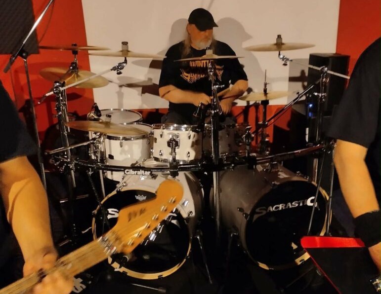 V 21:15 jsme nastoupili na pódium my – Sacrastic. A musíme říct, že to bylo jako hrát doma před známými tvářemi a lidmi, kteří přišli podpořit metalovou scénu, má vždycky něco navíc.